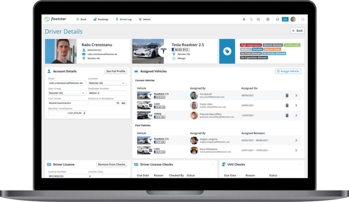 Het bestuurdersbeheer in fleetster maakt het mogelijk om bestuurdersprofielen vast te leggen en te beheren. Hier kan informatie zoals contactgegevens, rijbewijsgegevens en belangrijke persoonlijke informatie worden vastgelegd.